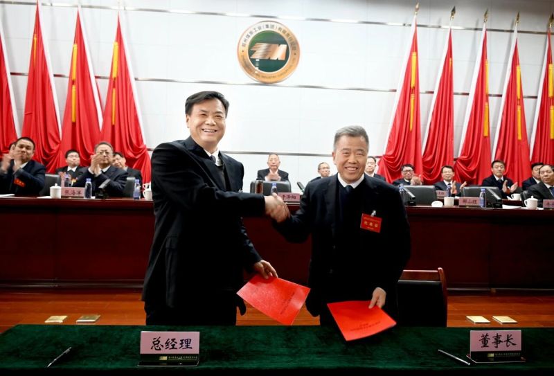 会上,党委书记、董事长于泽阳与总经理刘君签订了集团公司2026年经营目标责任书;总经理刘君与有关单位负责同志签订了单位2026年经营目标责任书;党委书记、董事长于泽阳与党委委员、副总经理、工会主席张海洋签订《郑煤集团公司<集体合同>》。